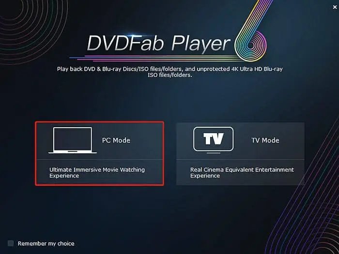 Prenez le meilleur lecteur multimédia 4K, DVDFab Player, par exemple, vous devez télécharger et installer ce logiciel de lecteur vidéo 4K à partir de son site Web. Ensuite, choisissez le mode PC lorsque le programme s'exécute. Accédez ensuite aux paramètres pour personnaliser la lecture 4K. Bien sûr, vous remarquerez que Movie Server apparaît sur l'interface utilisateur. Allez sur le site Web de DVDFab et apprenez-en plus à ce sujet.