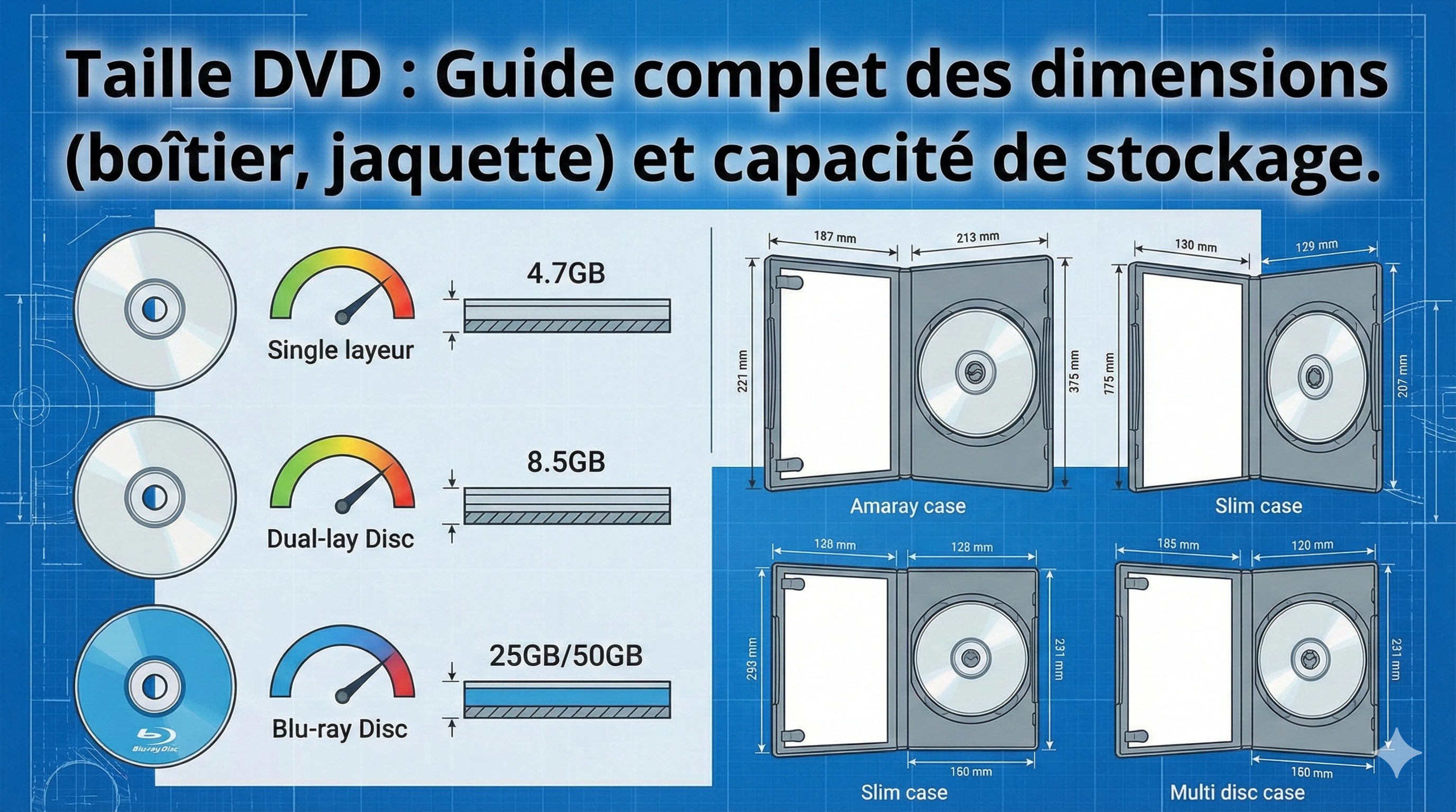 Taille DVD : Guide complet des dimensions (boîtier, jaquette) et capacité de stockage