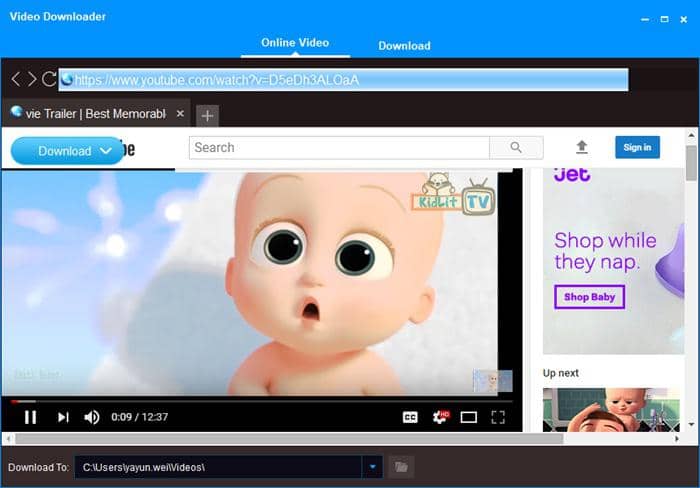 Allez au module Utilitaires, choisissez l'option "Video Downloader" et cliquez sur l'icône YouTube pour aller au site web YouTube. Trouvez la vidéo que vous voulez et lisez-la. Cliquez sur le bouton "Télécharger" dans le coin supérieur gauche, puis cliquez sur la résolution que vous voulez pour lancer le processus de téléchargement. Cliquez sur l'onglet "Télécharger" dans la barre d'adresse, vous pouvez voir le processus de téléchargement. Quand le téléchargement est terminé, vous pouvez cliquer sur "To Converter" pour ajouter la vidéo au module Converter directement.