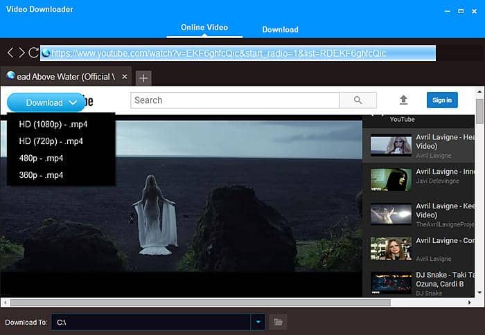 Étape 2: Un bouton «Télécharger» apparaît en haut à gauche dans l'onglet Vidéo en ligne. Vous pouvez choisir de différentes résolutions vidéo à télécharger: 1080P, 720P, 480P et 360P, etc.