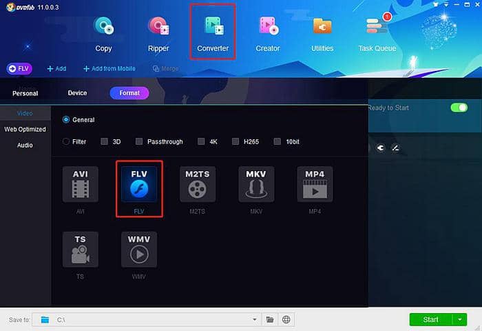Étape 4: Dans le module DVDFab Video Converter, cliquez sur le sélecteur de mode à gauche pour choisir le format FLV.